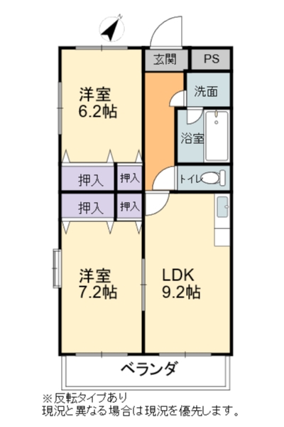 2部屋にそれぞれ大きな収納を設けているので用途に分けての収納も可能ではないかと、