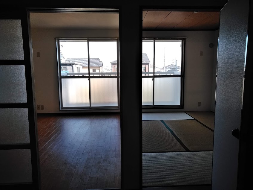 ちなみに、2階の203号室にて、DKから洋室・和室を臨むとこんな感じ。