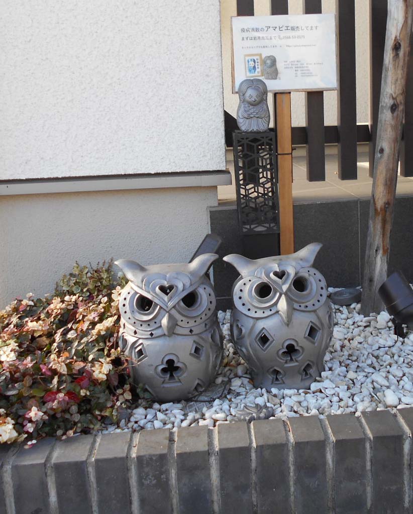 可愛いアマビエとフクロウが飾ってあるお宅を発見!!