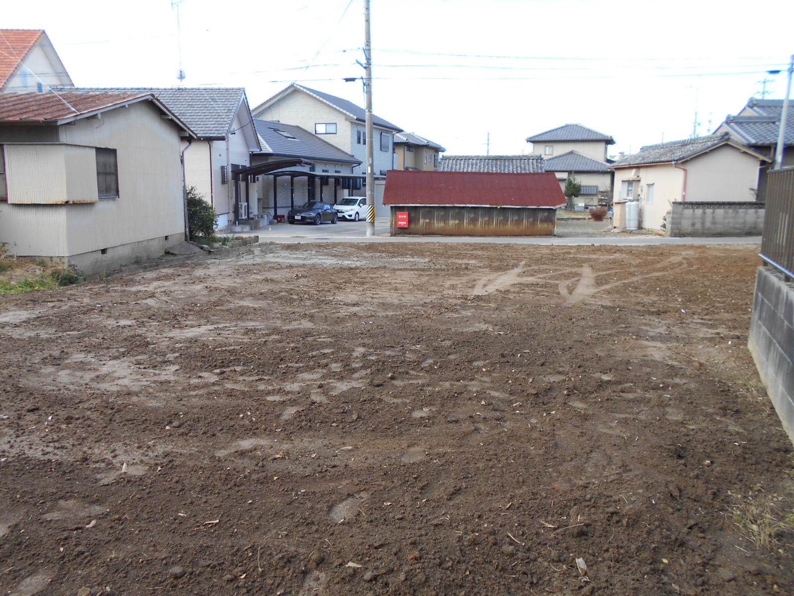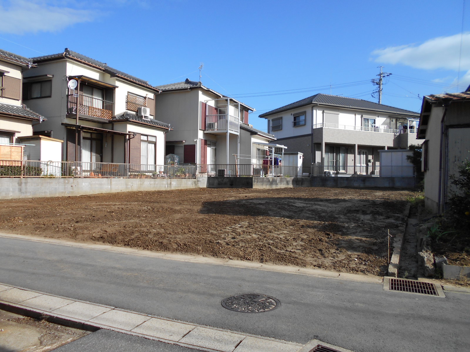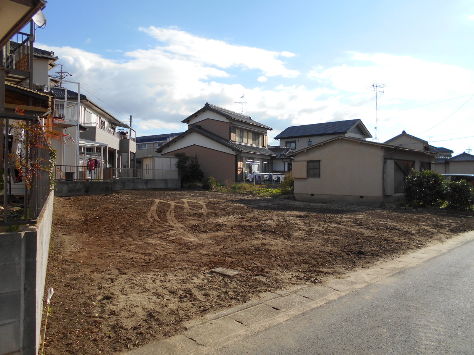 アスファルト舗装された、東側の広いお庭は、駐車スペースにも可能。