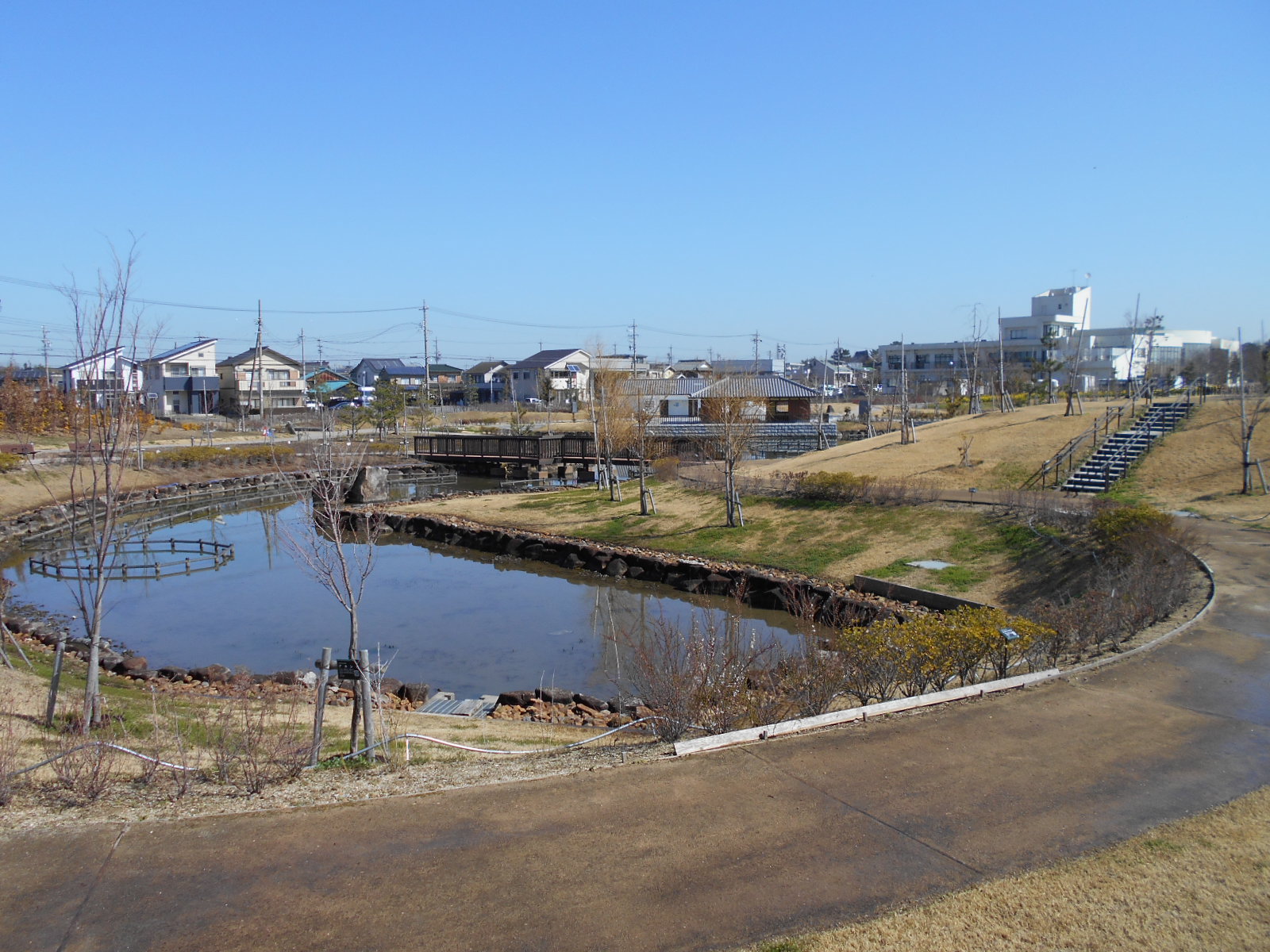 四季折々の風景を感じる心地よい散策ができる、油が淵水辺公園近く。